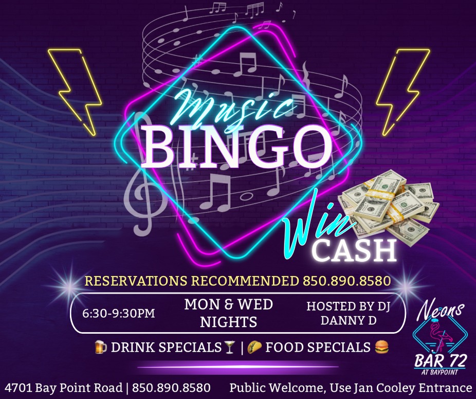 #MusicBingo #NeonsNights #NewFoodSpecials #EatDrinkPlay #BingoVibes #PCBLiveEvents #BayPoint #PanamaCityBeach #GoodVibesOnly #BingoEnergy