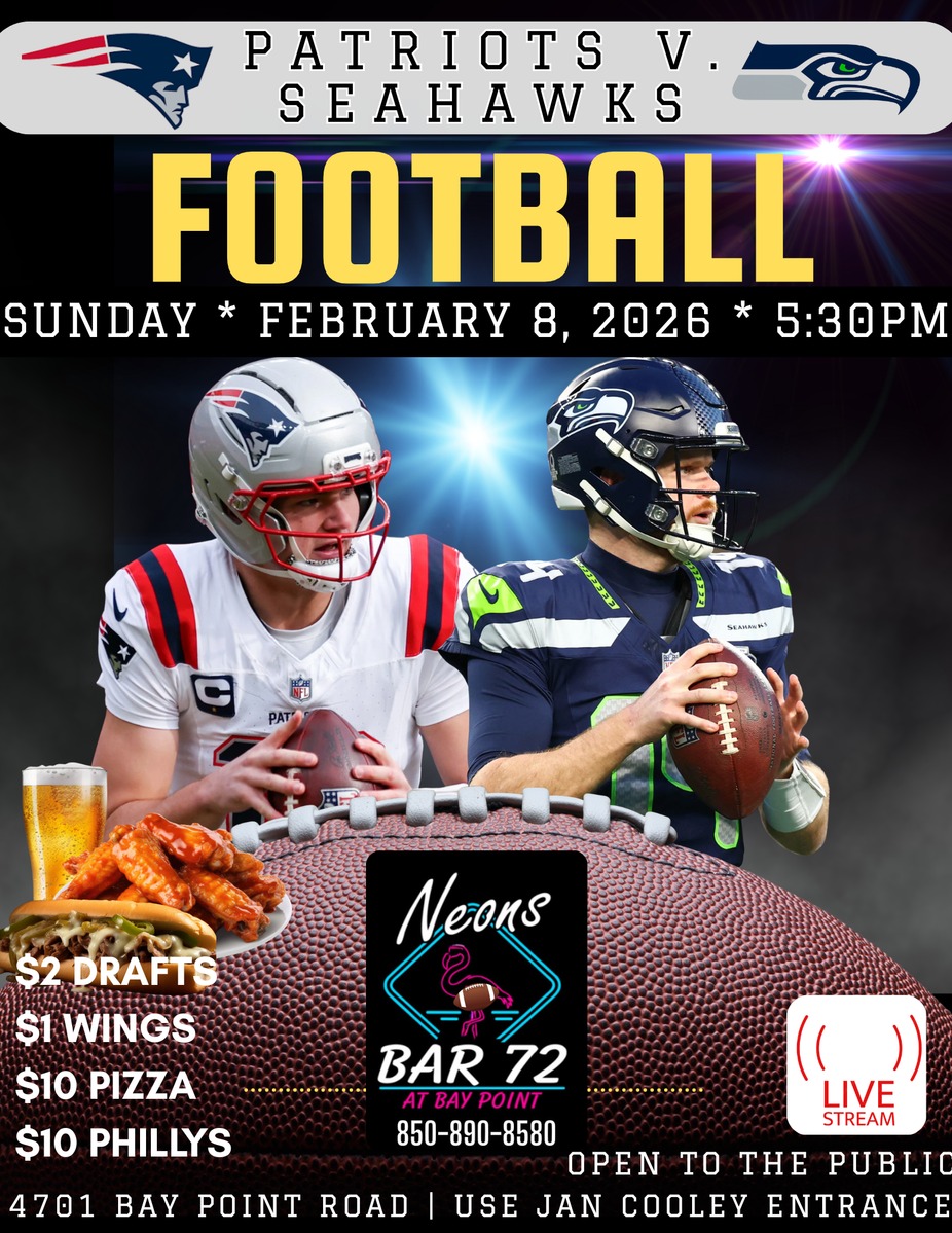 Patriots vs. Seahawks ā catch every play, every touchdown, and every big moment with us on Sunday, February 8th at 5:30PM! Weāre streaming the game LIVE with the sound up, the drinks cold, and the food hot.