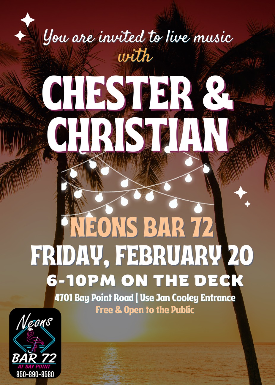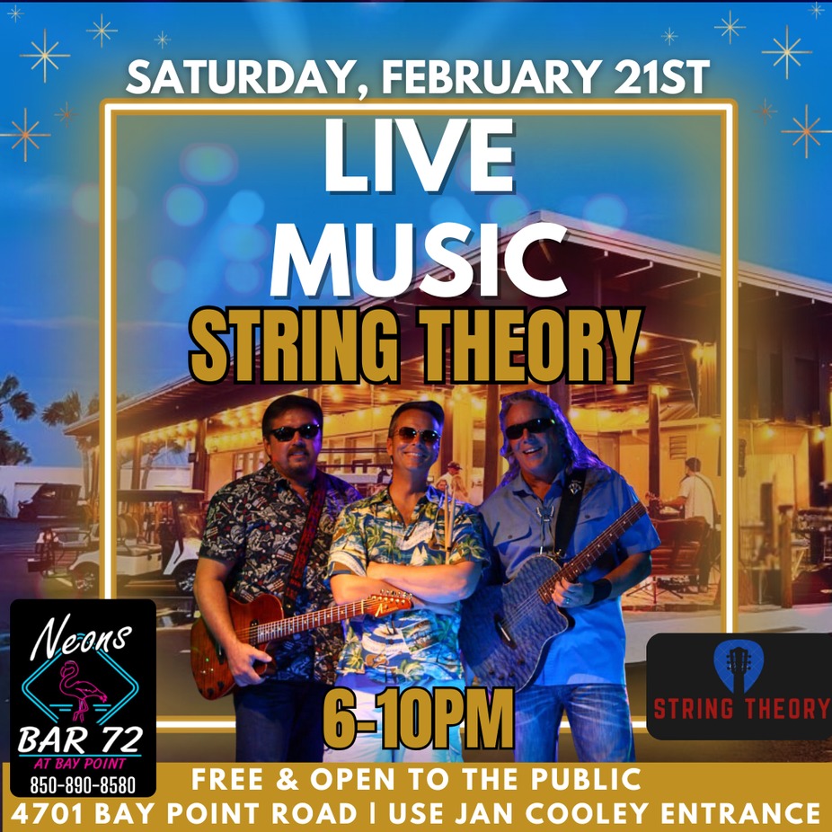 Ā Get ready to feel the vibe come alive with String Theory at Neons Bar 72, 4701 Bay Point Rd!Ā Ā From smooth grooves to rockinā riffs, theyāre bringing the perfect blend of energy, talent, and fun to light up your night!Ā Ā Grab a drink, grab your crew, and letās make it a night to remember!Ā Ā FREE and open to the public.