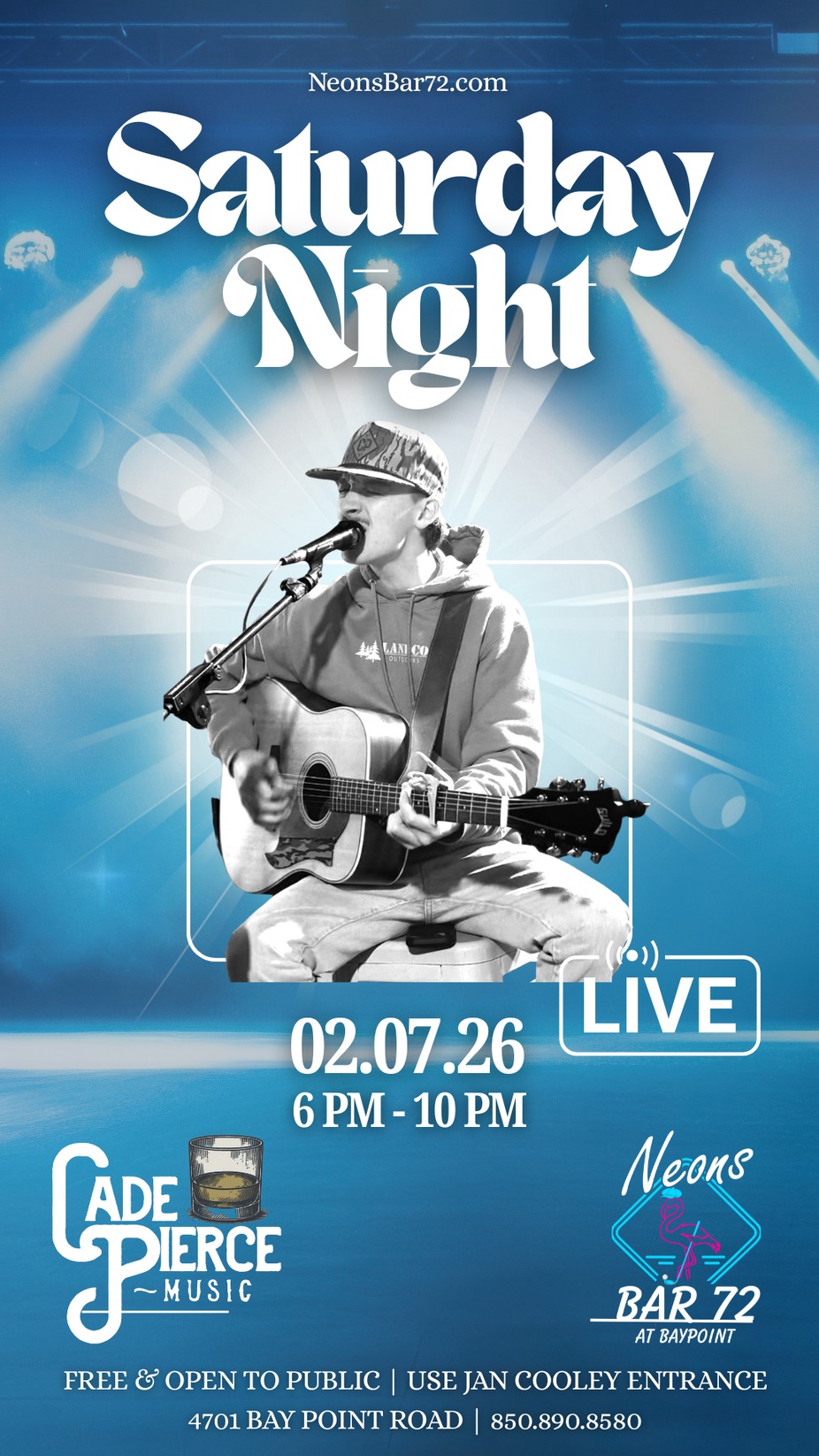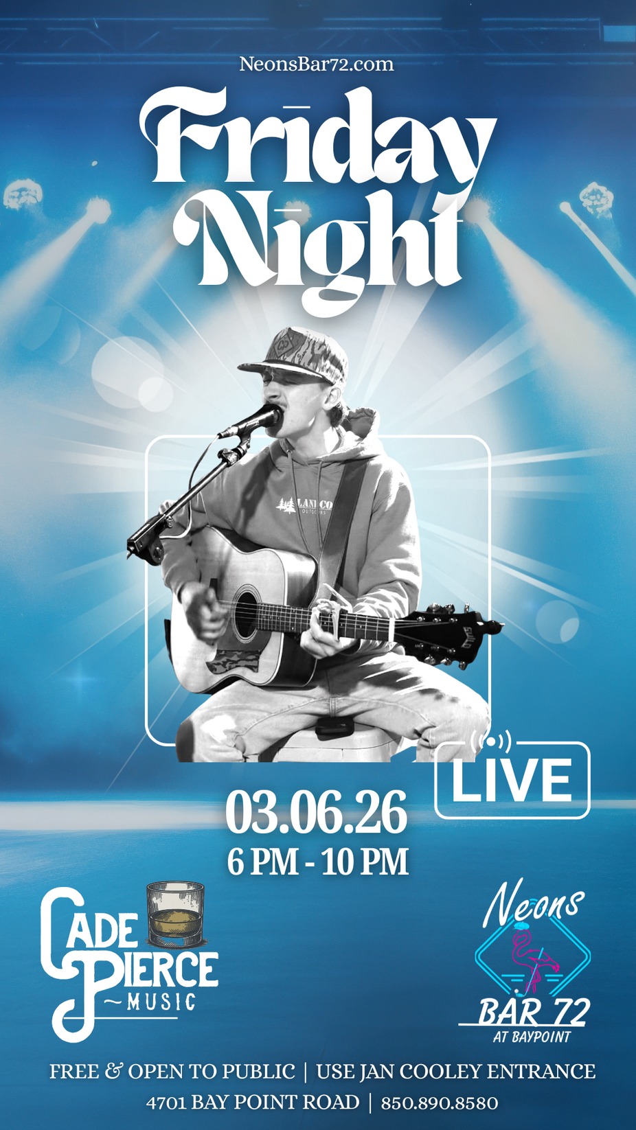#CadePierce #LiveMusic #CountryNight #OnTheDeck #NeonsBar72 #PCBNightlife #CountryVibes #FreeEvent #OpenToThePublic #PCBEvents