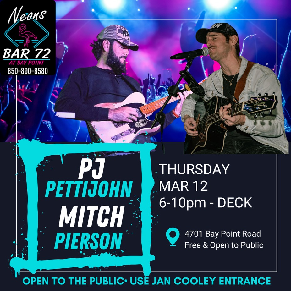 #LiveMusic #PJPettijohn #MusicTonight #PanamaCityBeach #PCBEvents #ThingsToDoPCB #LocalMusic #SupportLocalArtists #NightOut #GoodTimes #NeonsBar72 #FreeEvent #JanCooleyEntrance