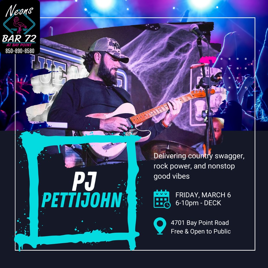 #LiveMusic #PJPettijohn #MusicTonight #PanamaCityBeach #PCBEvents #ThingsToDoPCB #LocalMusic #SupportLocalArtists #NightOut #GoodTimes #NeonsBar72 #FreeEvent #JanCooleyEntrance