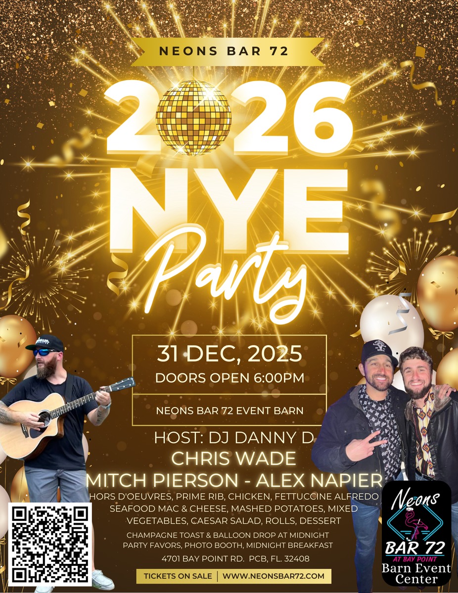 Ring in the New Year with an unforgettable NYE Party in the Event Barn hosted by DJ Danny D and featuring live performances by: Chris Wade • Mitch Pierson • Alex Napier 🎶✨