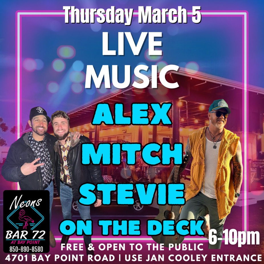#DeckSessions #LiveMusicPCB #AlexNapier #MitchPierson #NeonsBar72 #PanamaCityBeach #PCBEvents #EveningPlans #LocalMusic #OutdoorMusic #GoodTimesPCB #JanCooleyEntrance